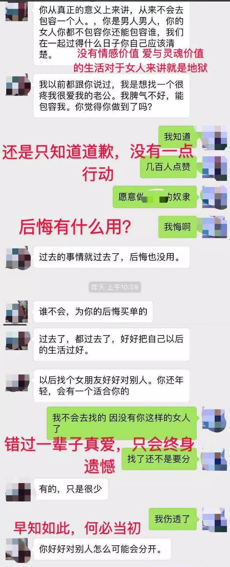 我在详细的分析了所有BOBO和这个女生的聊天记录后,发现BOBO只会道歉,却没有一丝的行动。女人是在表达不满,寻求理解与认同等情绪情感价值还有爱与灵魂层次的价值。