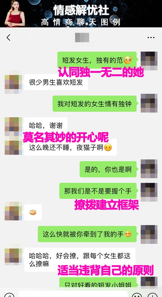 兄弟们!有没有一种,一生二,二生三,三生万物的感觉。其实聊天的脉络就是这样延伸和发展的。通过这样的不断延伸,慢慢的两人从陌生人变成了知道很多彼此之间的“小秘密”,爱情的土壤就有了。